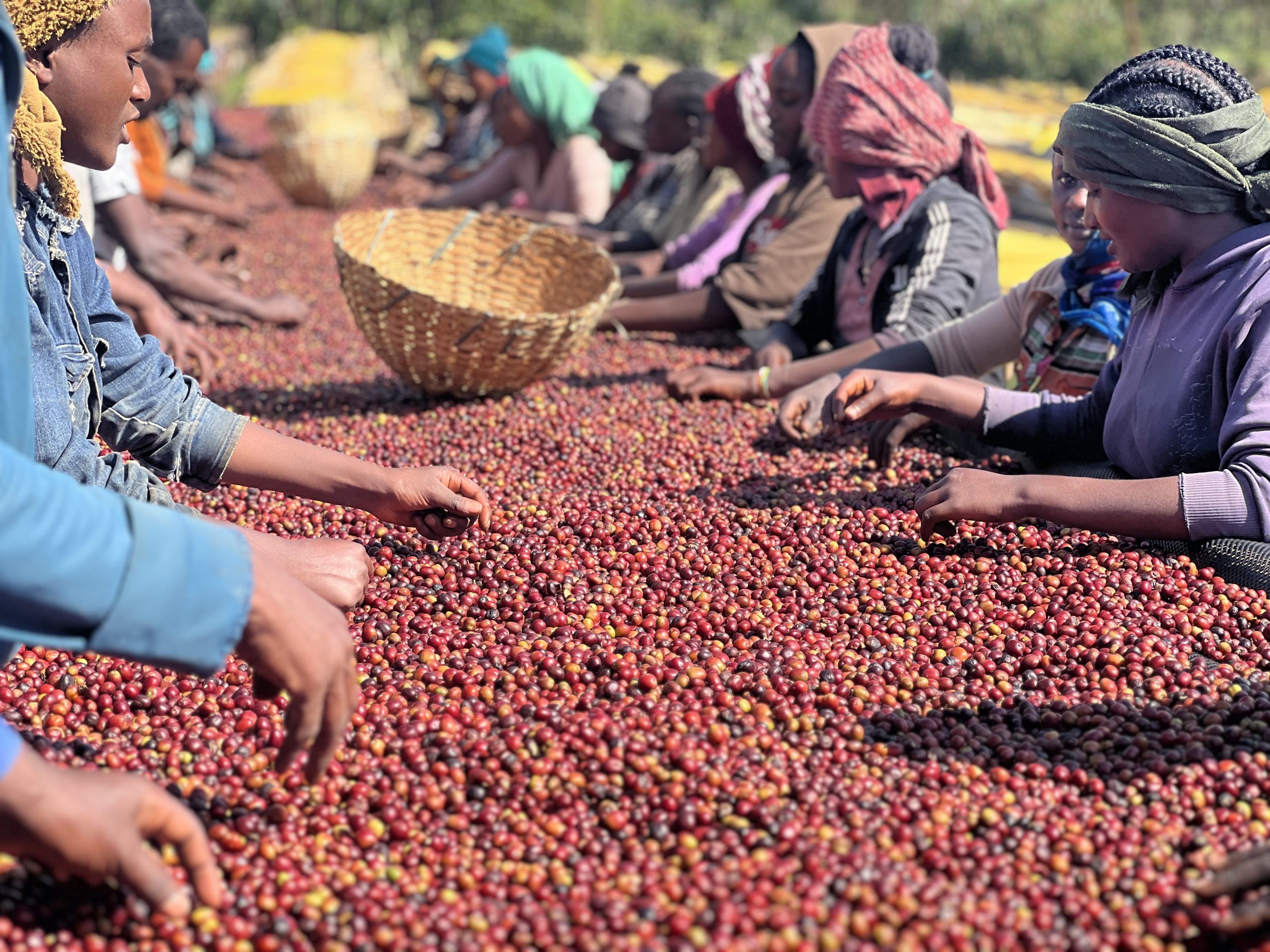 The majority of the families that contribute to the site farm organically on tiny plots of land, averaging less than one hectare in size. Coffee is their main cash crop and grows alongside food crops of corn, grain, and bananas, under the shade of native Birbira, Wanza, and Acacia trees. The average elevation of the farms in this region is very high – around 2,000–2,200m above sea level – and this, combined region’s cool temperatures, is ideal for the slow ripening of coffee cherries, leading to denser beans and a sweeter, more complex cup profile.